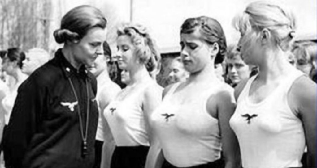 I've seen this photo hundreds of times and it always piques my interest. Obviously, it comes from the Nazi Germany era. I've always wondered, is the girl in the middle showing off her new bra? And what the heck is the woman in black spying? Or is she lusting? But that's just me.