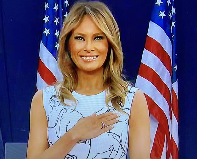 The nitwits on the Left had a field day with Melania's July 4 dress. "Did the President use a sharpie to draw on it" was the common refrain. Little did they know the attire was designed by by a nineteen year old with the message, "Bring Us Together".